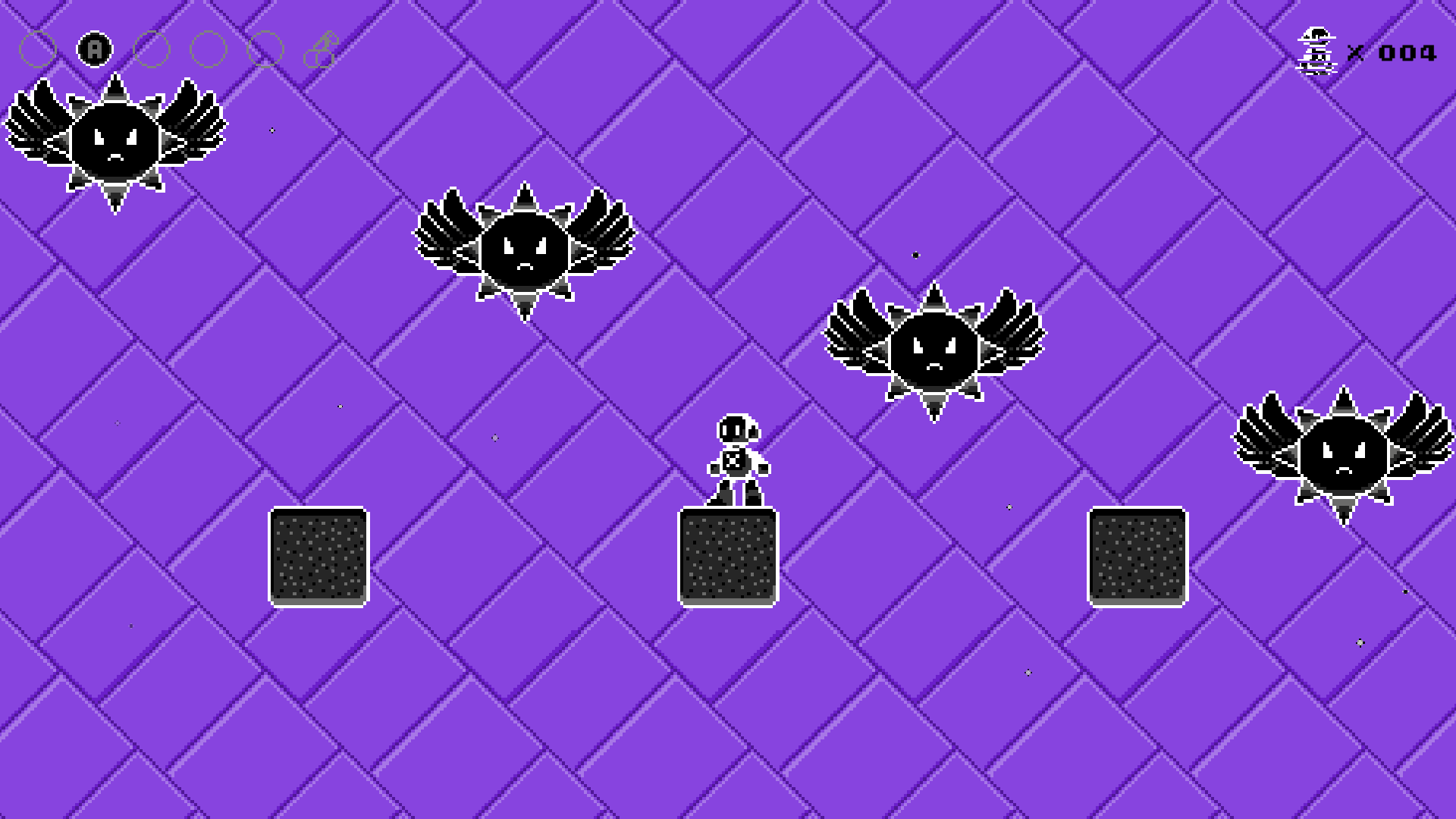 Traditional tough-as-nails platforming meets a novel phase mechanic where players must swap between black and white to avoid hazards and land on platforms.